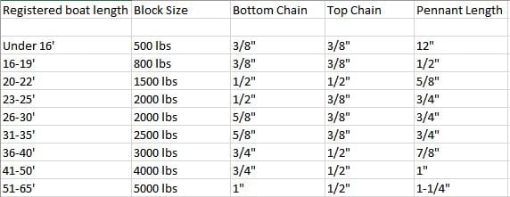 The town of Jamestown allows the use of Reinforced Concrete Blocks, Helix Anchors Mushroom and Pyramid Anchors. Listed below are the minimum mooring regulations. Always consider going with a least one size up where possible.